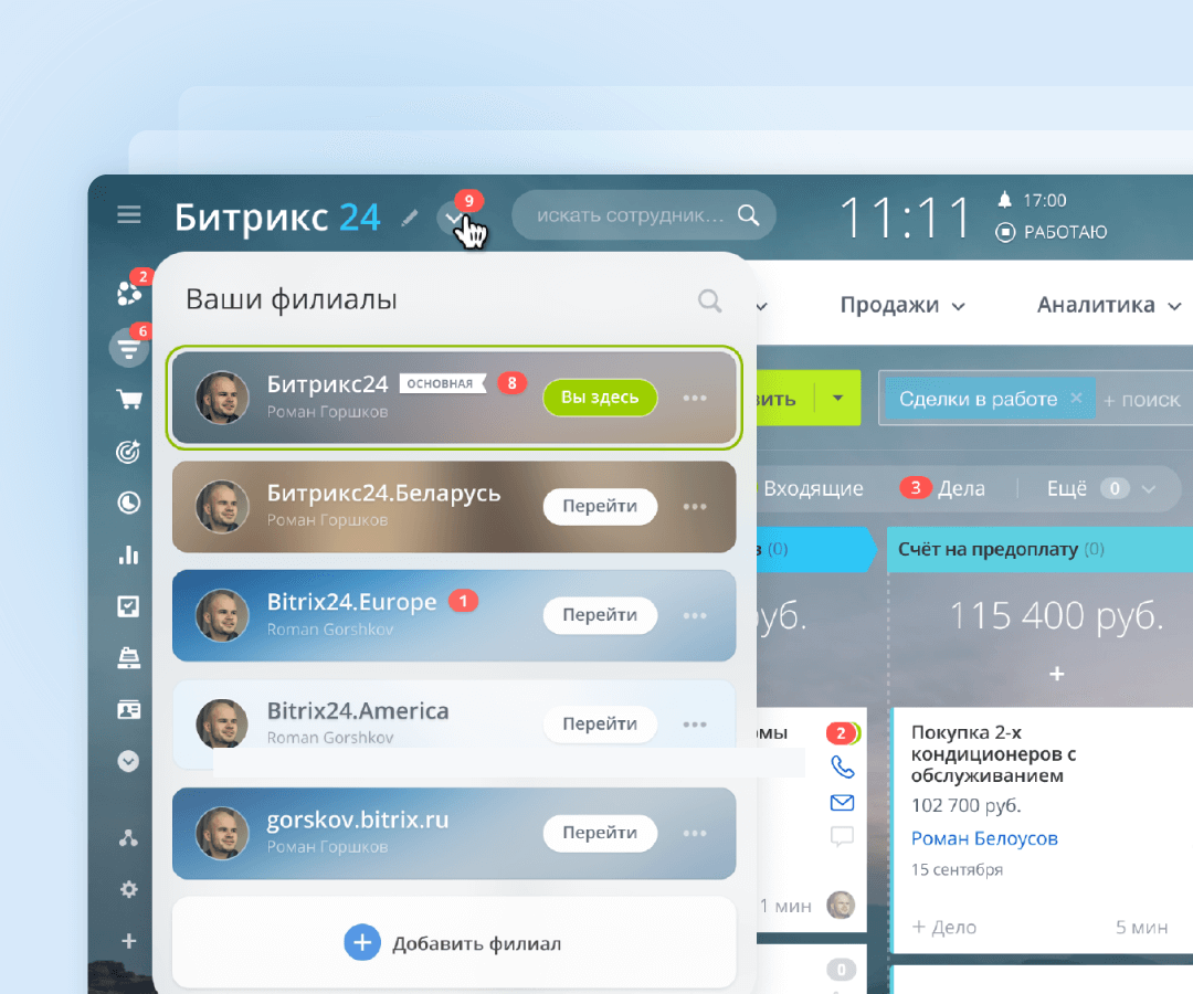 Быстрый переход между разными Битрикс24 в филиальной сети